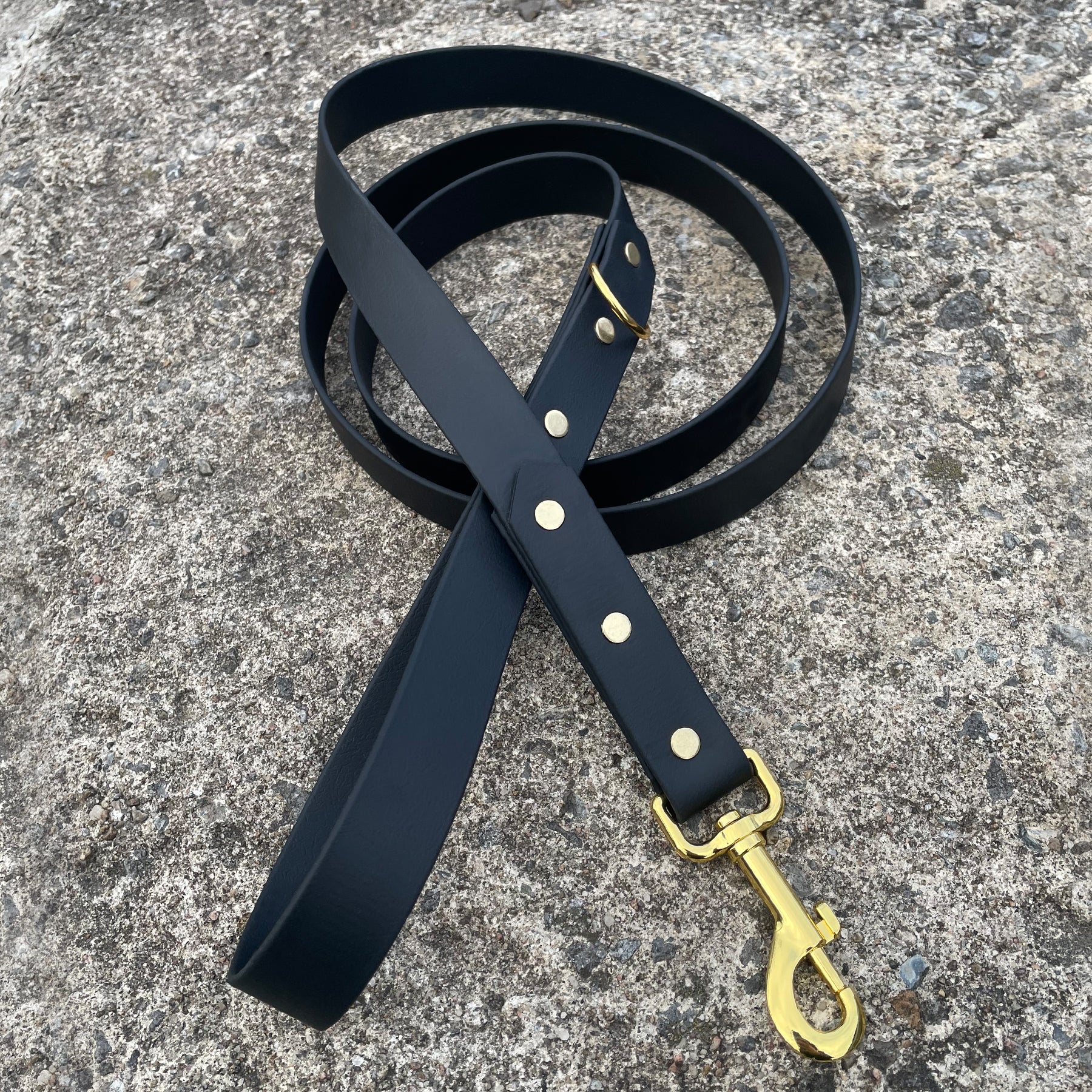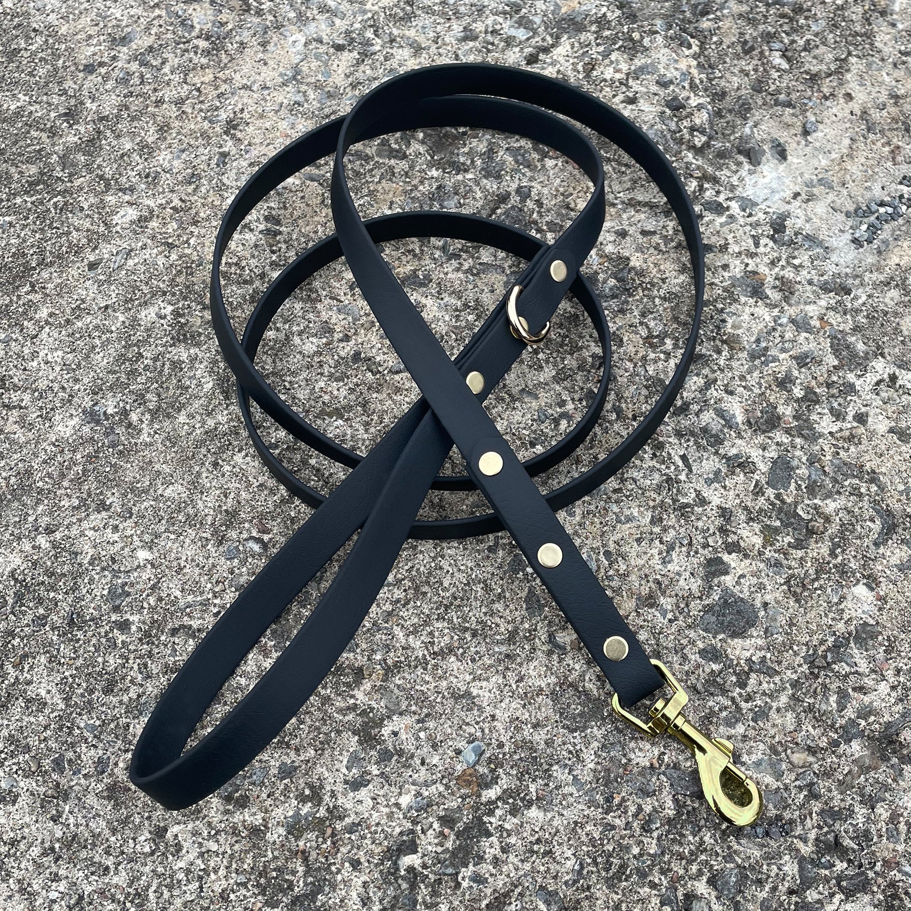 Laisse simple en BioThane fait à la main. Quincaillerie or. Noir.